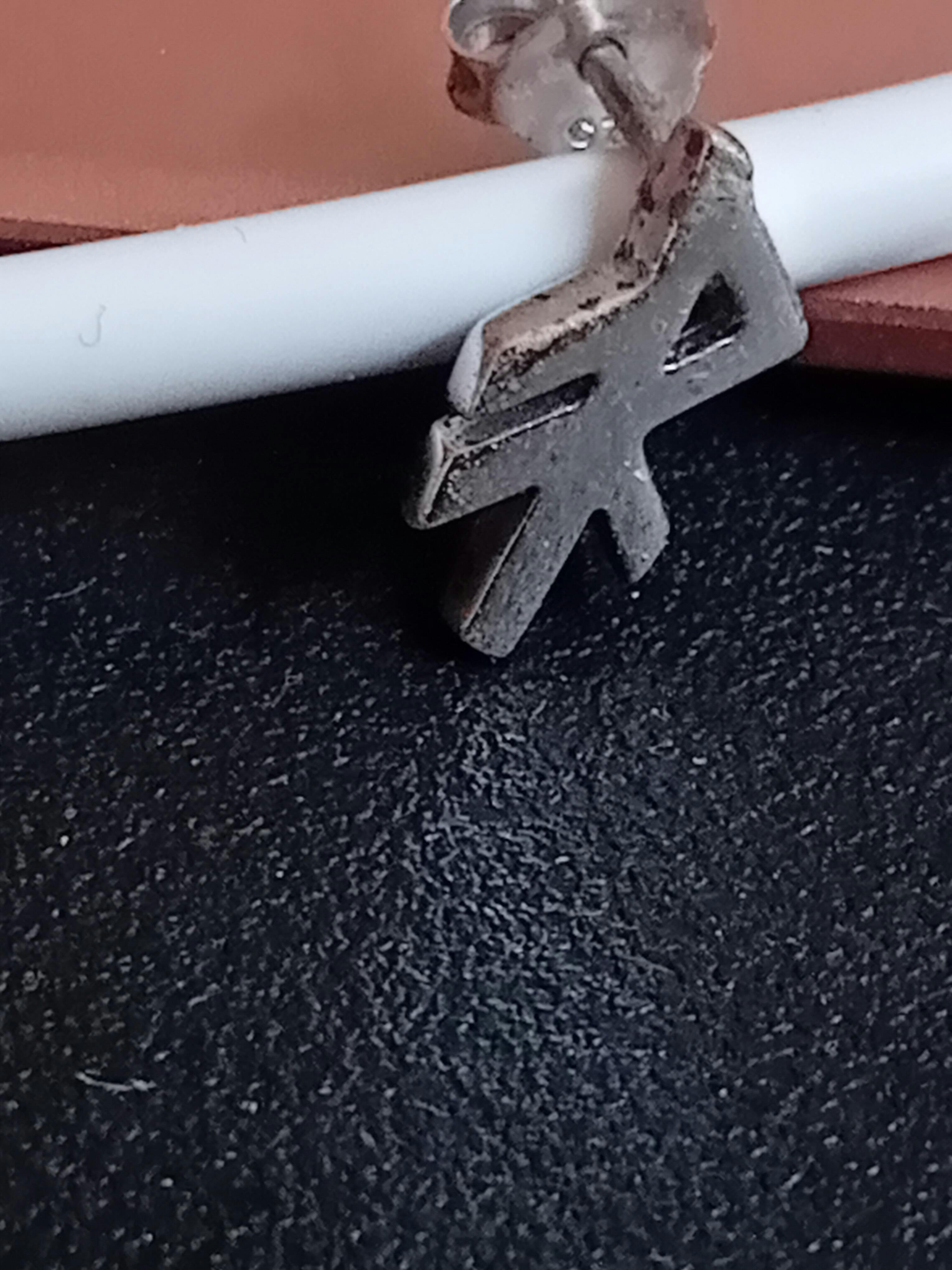 Beautiful silver bindrune studs with butterfly backs, depicting the bindrune for ‘energy" or "Orka" in Icelandic.