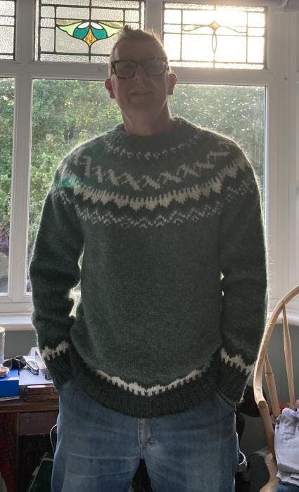 Ernir has one of our classic Icelandic patterns. The green heather color has been discontinued but we made sure to buy up the whole production of the last lot. So we have enough to make about 10 of these sweaters.
